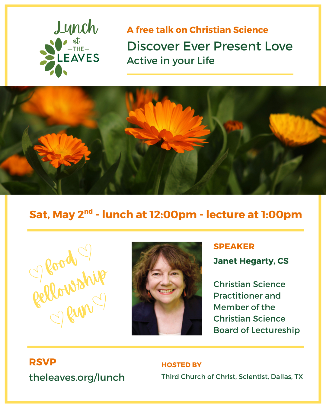 Join us for a free talk on Christian Science by Janet Hegarty, CS, Christian Science Practitioner and Member of the Christian Science Board of Lectureship.